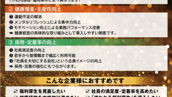法人会員制度のご案内|福利厚生・健康経営の一環として